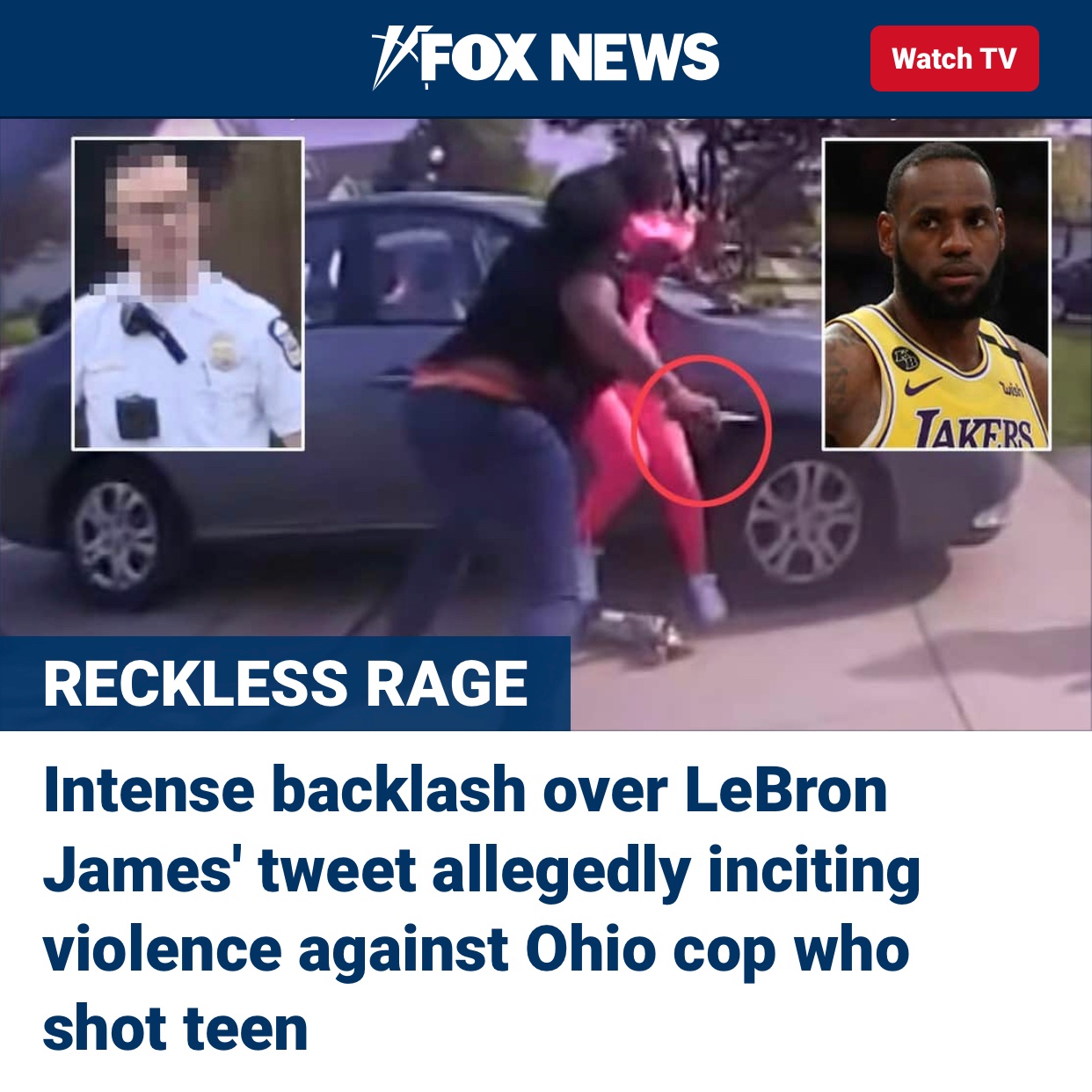 James’ tweet literally read, “YOU’RE NEXT #ACCOUNTABILITY.” Now I’m not defending him based on rhetoric or him strategically sub-communicating a call to violence by leaving a gap in his message that his intended audience would complete using common knowledge; it’s an absolute fact that this tweet doesn’t call for violence against this officer. His tweet made reference to prosecution and nothing else. Yet Fox News connected it to violence when there is absolutely none to be found. Lebron James simply has no history of violence and for this officer to be “next” there has to be a previous specific notable violent occurrence Mr. James was referring to. The only thing that fit the criterion of a “next” for the involved officer in the Ma’Khia Bryant case was the Derek Chauvin conviction. In the time surrounding the verdict,